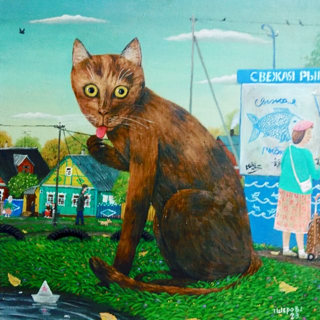 «По формальным признакам Юрия Шерова нельзя назвать наивным художником, ведь за его плечами – художественное образование, изостудия, длительный опыт интерьерных росписей и годы поиска собственного стиля. Автор близок наиву по духу – сюжетами, взглядом на мир, настроением и любовью к жизни во всех ее проявлениях», - рассказали в музее.