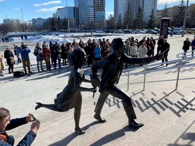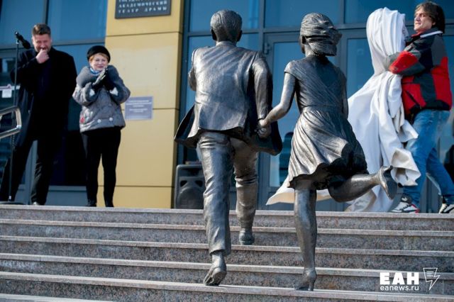 В Екатеринбурге сегодня торжественно открыли новую скульптуру «Спешащие на спектакль», установленную на набережной Исети, возле Свердловского областного театра драмы. В церемонии приняли участие министр культуры Свердловской области Светлана Учайкина и автор проекта, лауреат национальной премии «Золотая маска» Владимир Кравцев.