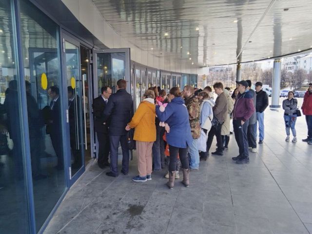 По словам корреспондента, все проходило достаточно спокойно. Людей запускали в холл группами. На входе им меняли карточки участников, полученных на избирательных участках, на входные билеты.