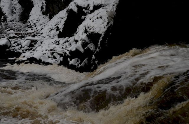 Заключительной точкой нашего маршрута стал водопад – это искусственный слив плотины пруда, образованного на реке Межевая Утка. Водопад является одной из самых главных достопримечательностей поселка Висимо-Уткинска. Вода падает примерно с 5 м и попадает на огромные камни, образуя живописный утес. Выглядит это место очень эффектно в любую погоду, поэтому здесь всегда можно сделать красивые фотографии.