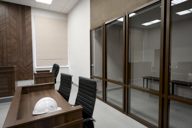 Готовность объекта строители оценивают в 53%. Сейчас рабочие монтируют стены и заканчивают устройство крыши. Куйвашеву и Крашенинникову показали первый и второй этажи будущего суда и зал заседаний на 40 мест для рассмотрения уголовных дел, который уже оборудован мебелью. Работы, по заверениям подрядчиков, идут в соответствии с графиком.