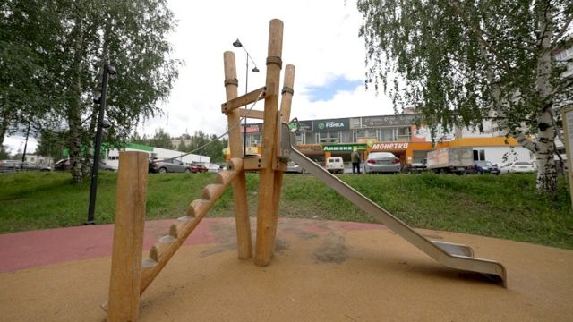 В проекте благоустройства предусмотрены площадки для детей. Так, для подростков установлены спортивные уличные тренажеры, столы для настольного тенниса. Все склоны оборудованы пандусами для маломобильных групп граждан.