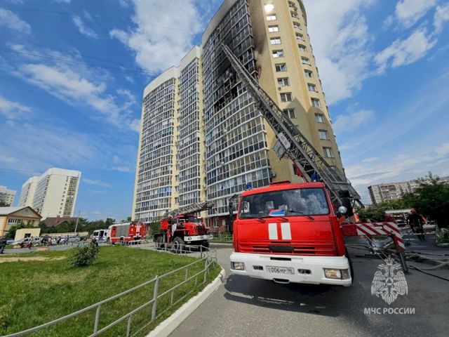 Высотный дом горит на Уктусе в Екатеринбурге 2 июля 2024 в 12:00