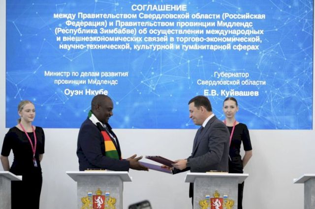 Свердловская область и провинция Мидлендс в Зимбабве стали экономическими и научными партнерами. Документ о сотрудничестве на полях выставки «Иннопром-2024» подписали губернатор Евгений Куйвашев и министр по делам развития провинции Оуэн Нкубе, передает корреспондент ЕАН.