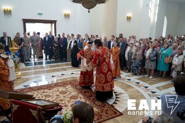 На освящение храма митрополит Евгений приехал не один – вместе с ним участие в богослужении приняли митрополит Челябинский и Миасский Алексий (Орлов) и епископ Каменский и Камышловский Мефодий. В кульминационный момент обряда – когда стены храма помазывались елеем, все находившиеся в храме затаили дыхание, осознавая исторический момент происходящего для Алапаевска. После совершения чина за труды при строительстве нового храма медалью «За усердный труд» второй степени был награжден директор Фонда святой Екатерины Александр Андреев.