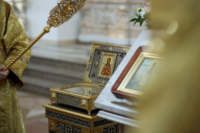 По окончании литургии храму был передан ковчег с частью мощей святого Алексия. Виктор Маслаков доставил святыню из Италии. Он подчеркнул, что переданный подарок имеет большую историческую ценность, и передал храму также все соответствующие документы. В сообщении на сайте Екатеринбургской епархии уточняется, что это дар храму и от одного из главных инициаторов его строительства и основателей района – Алексея Воробьева, экс-председателя областного правительства (с 1996 по 2007 год), возглавлявшего с 2009 по 2015 год ЗАО «Ренова-СтройГруп-Академическое».