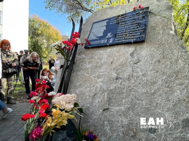 В Екатеринбурге перед главным корпусом УрФУ открыли новый мемориал, посвященный погибшим туристам группы Игоря Дятлова. Как сообщает корреспондент ЕАН, на церемонию пришло около сотни человек.