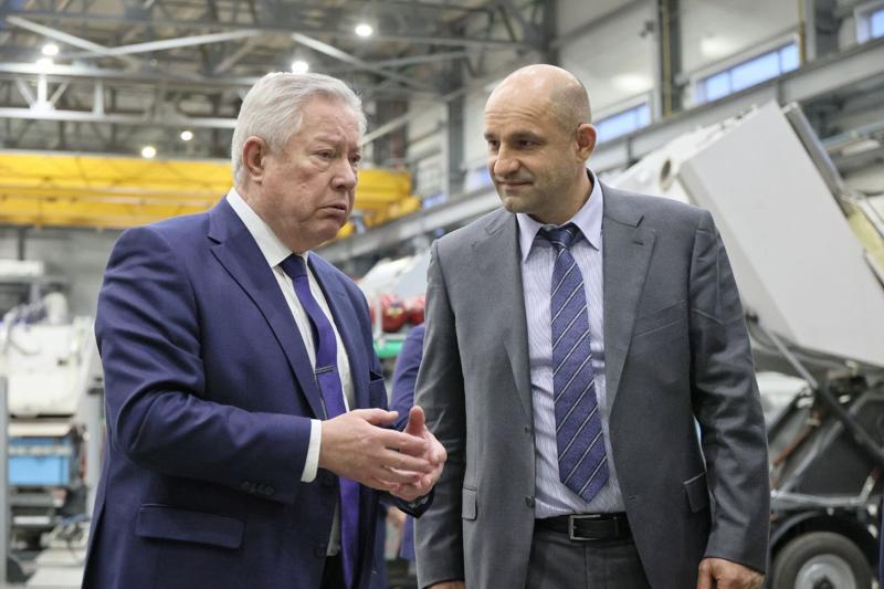 Полпред посетил цех по выпуску гражданской продукции МЗиКа. На предприятии производят всю линейку грузоподъемной техники - от электрических погрузчиков и ричтраков до транспортировщиков паллет. Кроме того, завод выпускает коммунальные машины, которые называют «городскими пылесосами». Такие вакуумные машины являются универсальными, их можно задействовать в уборке города как летом, так и зимой.