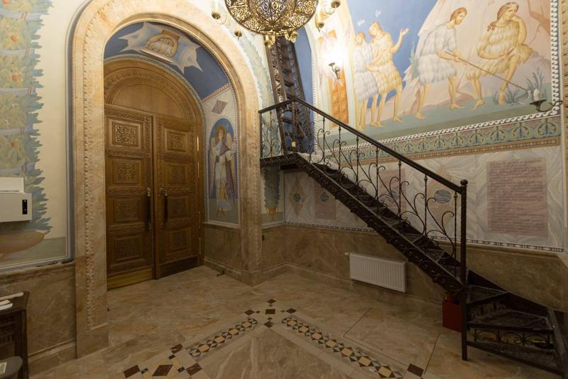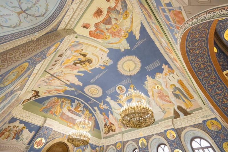 Также изображено освобождение святого апостола Петра архангелом Михаилом. На стенах храма появились лики святых царственных страстотерпцев и святых воинов. В своей работе художники опирались на традиции росписи сербских и византийских художников, а сам проект был создан вместе с сестрами Ново-Тихвинского женского монастыря.