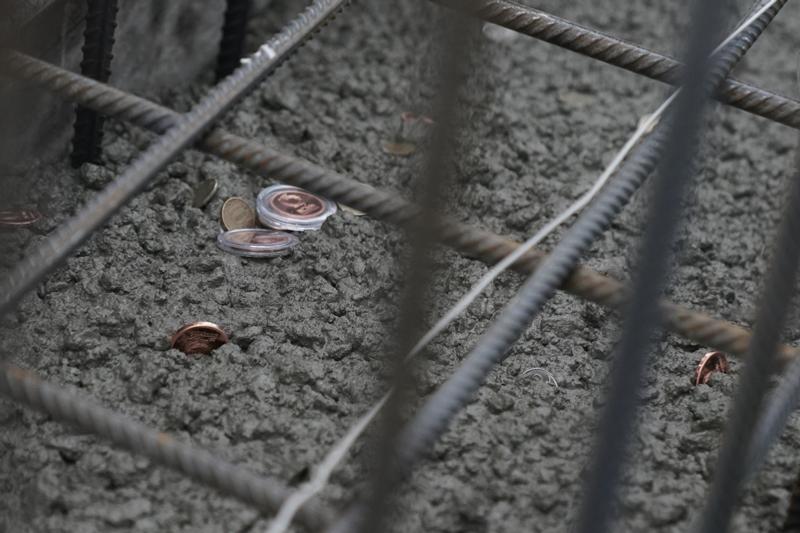 Перед заливкой бетона гости мероприятия по традиции бросили в основание будущей новостройки монеты. Строители верят, что это принесет в дом удачу и благополучие.