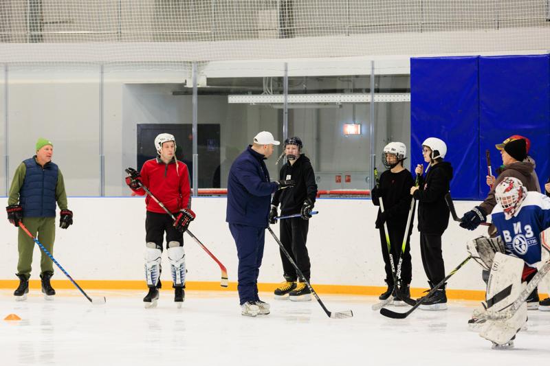 Секретами профессионального мастерства делились наставники и спортсмены корпоративной хоккейной команды «ВИЗ». Под руководством профессионального тренера Евгения Серукаева участники мастер-класса осваивали элементы хоккейной разминки, технику катания, торможения, владения клюшкой и ведения шайбы.
