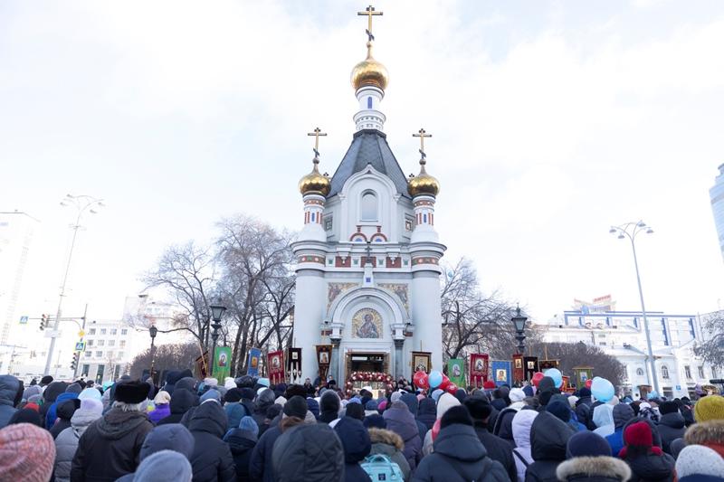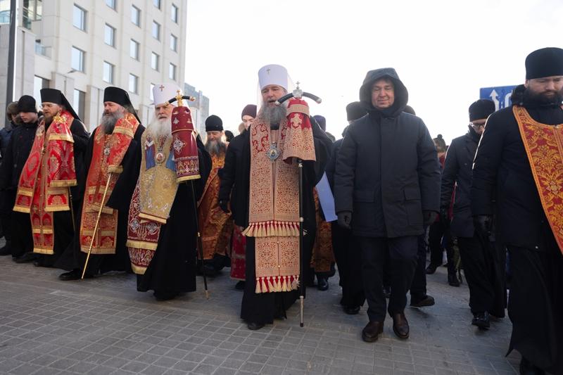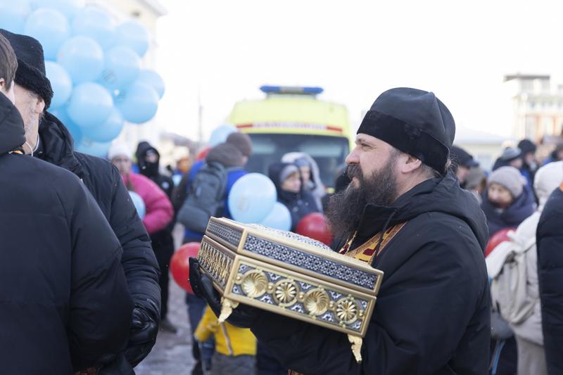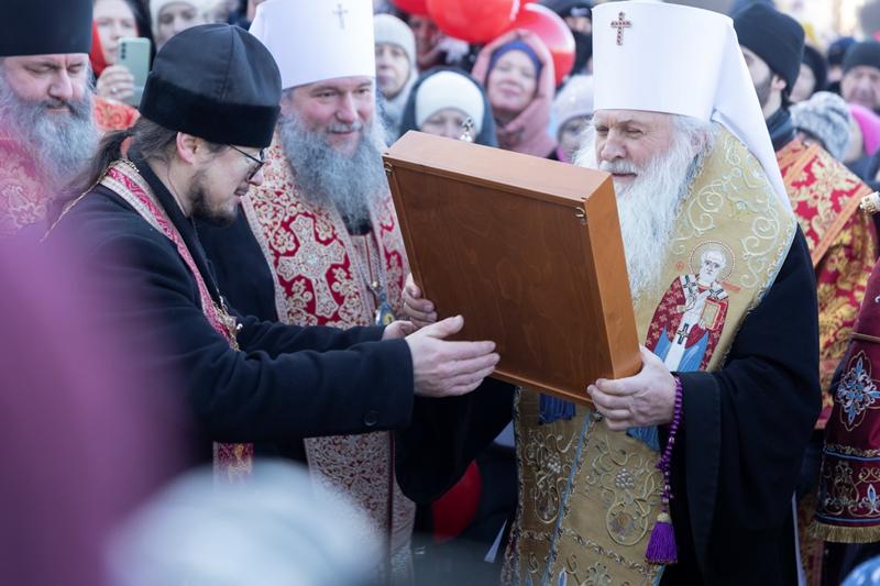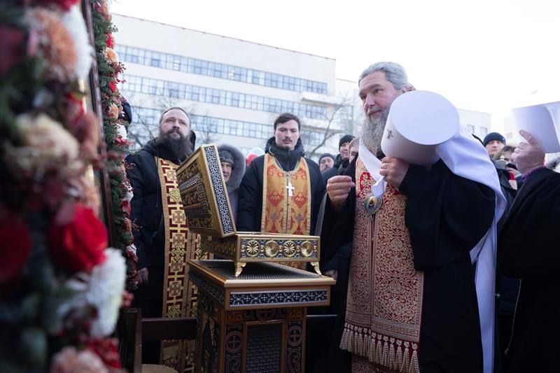Пронесли по главным улицам города и ковчег с самыми дорогими для христиан святынями: частицами Креста Господня и копья Лонгина, которое, согласно Евангелию, римский солдат вонзил в распятого Иисуса Христа. У часовни митрополит Евгений вместе с другими архиереями провел молебен и поклонился мощам святой Екатерины вместе со всеми верующими.
