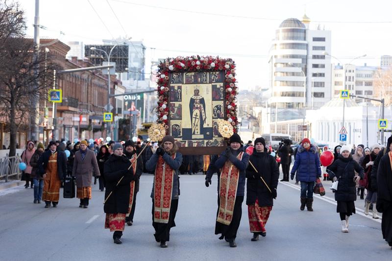 В Екатеринбурге 7 декабря прошел традиционный общегородской крестный ход в честь дня памяти небесной покровительницы уральской столицы Святой великомученицы Екатерины. По оценке Екатеринбургской епархии, в шествии приняли участие около 3,5 тыс. человек.