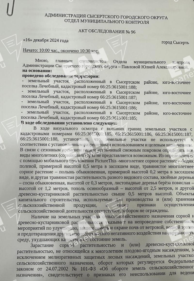 В 2023 году арендатор обратилась в мэрию муниципалитета с предложением выкупить эти участки в собственность. В связи с тем, что участки по назначению потенциальным покупателем не используются, администрация Сысертского городского округа отказала. И вот на этом этапе произошло явление депутата Вегнера.