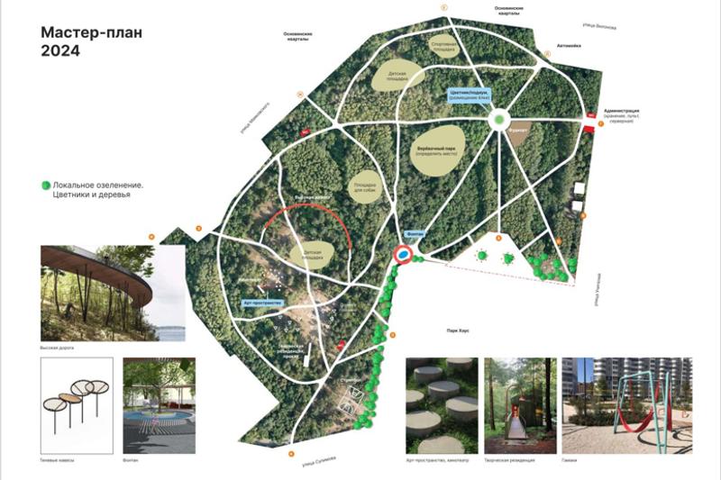 Согласно проекту, в Основинском парке предусмотрено арт-пространство, кинотеатр, творческая резиденция, фонтан, цветники, теневые навесы и гамаки в зоне релакса. Также планируется обустроить веревочный парк и подиум с цветником для новогодней елки зимой. Предполагаемый срок начала благоустройства – 2026 год, при условии, что парк победит в рейтинговом голосовании федерального конкурса.
