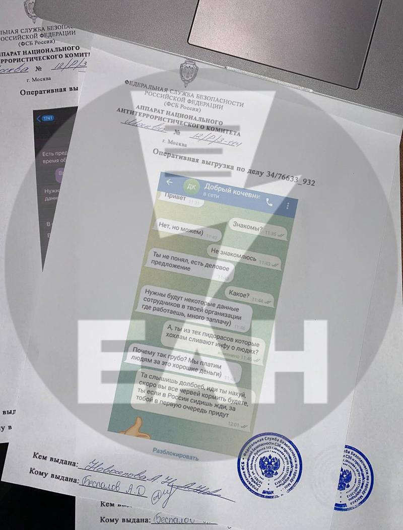 После того, как «Куимова» сообщила, что с корреспондентом свяжется сотрудник ФСБ по фамилии Беспалов, стало понятно, что это провокация.
