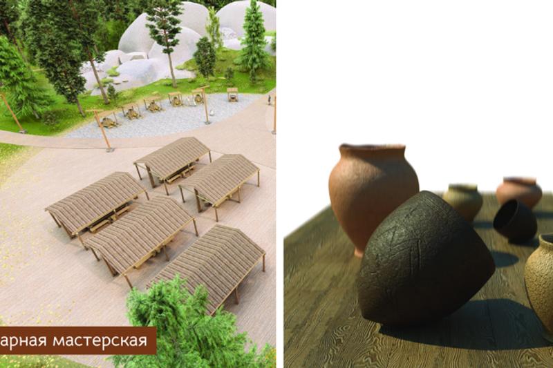 Задумано, что парк будет состоять из нескольких тематических зон. Это будет палеодеревня с тремя типами домов, гончарной мастерской, зонами выделки шкур, ткачества и плетения, охоты и рыболовства. Побывав здесь, современный человек сможет немного окунуться в далекое прошлое.