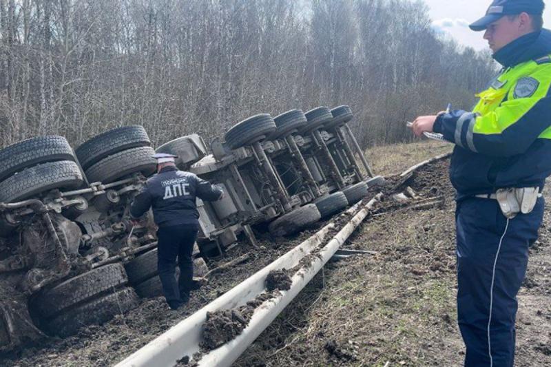 Как сообщает пресс-служба свердловской Госавтоинспекции, большегрузный автомобиль ехал по Камышловскому району в направлении Тюмени. У него лопнула шина, фура опрокинулась и упала в кювет.