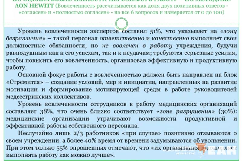 «В докладе не было никакой речи о том, что больше половины медсестер равнодушны к своей работе, тем более, о том, что почти половина мечтает уволиться из больницы.