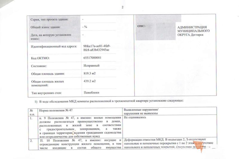 Предыстория такова. Дом строило ООО «Комбинат панельного домостроения «Урал», которое в настоящее время исключено из ЕГРЮЛ. В 2015 году мэр Дегтярска Игорь Бусахин подписал приемку недостроенного дома и ввел его в эксплуатацию. На каких условиях, из какого интереса он это сделал – неизвестно.