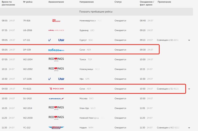 С большим опозданием в Екатеринбург прилетит самолет «Победы» - в 09:30 вместо 05:05. Лайнер «России» приземлится в Кольцово в 10:50 вместо 04:50. Рейс этой же авиакомпании из столицы Урала в Сочи задержан с 06:50. Планируется, что самолет вылетит в 11:50.