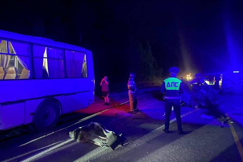 ДТП произошло накануне, 3 августа, около 23:00. По предварительным данным, водитель ВАЗа – мужчина 1991 года рождения, несмотря на знак «Обгон запрещен» и сплошную линию, выехал на «встречку» и врезался в ПАЗ. Частный автобус перевозил рабочих местного предприятия. Помимо водителя в салоне находились три человека, они не пострадали.