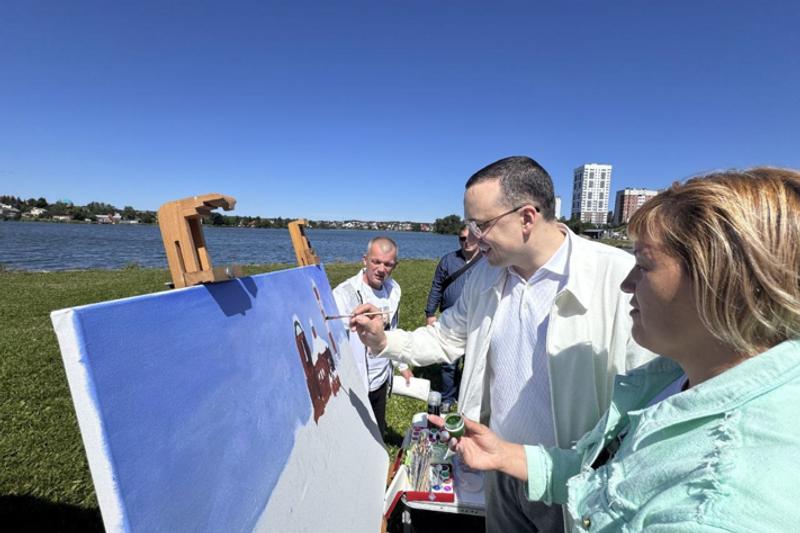 В Екатеринбурге выставлена на аукцион картина, которую создавали тысячи гостей фестиваля трубочек в Первоуральске, включая замгубернатора Дмитрия Ионина. Процессом руководили художники Евгений Гладких и Наталья Карпенко. Деньги от продажи картины пойдут на помощь юным пациентам онкогематологического центра.