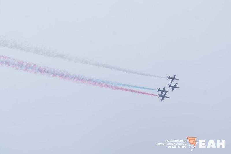 В Екатеринбурге в День города выступила известная во всей России пилотажная группа «Русь». Об этом сообщил корреспондент ЕАН.