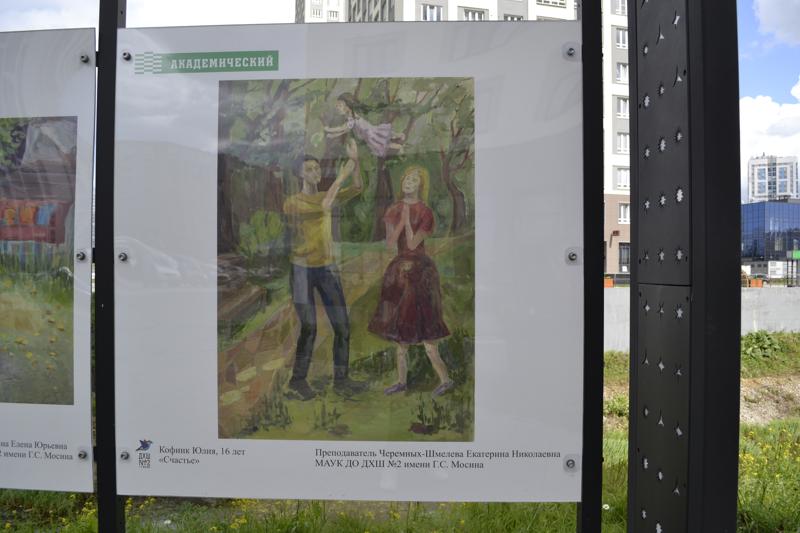 В екатеринбургском Академическом открылась выставка картин учеников филиала детской художественной школы №2 имени Геннадия Мосина. Экспозицию можно увидеть на Аллее творчества, расположенной на набережной между улицами Вильгельма де Геннина и Рябинина. Темы работ посвящены лету, отдыху и теплому общению с близкими.