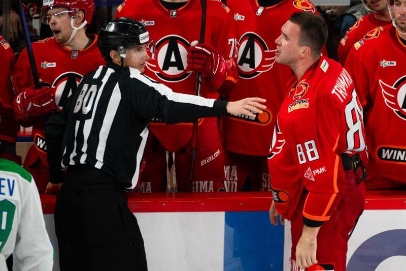 Под занавес периода защитник Никита Трямкин эффектно сошелся в бою со своим коллегой Александром Комаровым. Хоккеисты обменялись несколькими ударами, после чего екатеринбуржец повалил соперника на лед. Арбитры назначили обоим по пять минут штрафа. Для Трямкина это уже второй подобный эпизод в текущем сезоне.
