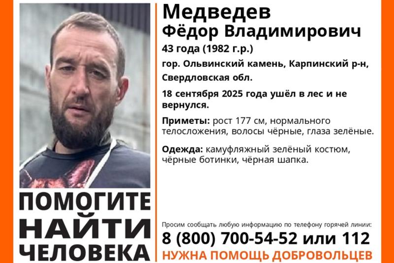 В Свердловской области с 16 сентября ведутся поиски 43-летнего Федора Медведева, который пропал 16 сентября во время сбора шишек в районе горы Конжаковский камень. Об этом сообщает telegram-канал Shot.