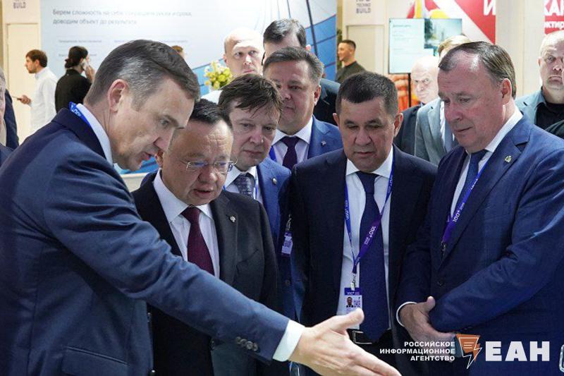 Ирек Файзуллин провел обход стендов и экспонатов, выставленных на строительном форуме-выставке. Его сопровождали заместитель губернатора Свердловской области Сергей Швиндт и мэр Екатеринбурга Алексей Орлов.