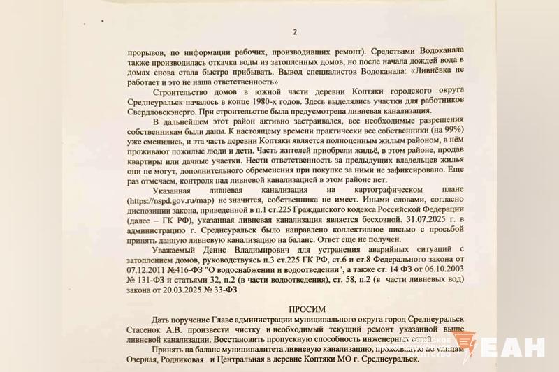 «Нам заявили, что без представителей администрации Среднеуральска с нами встречаться не будут. А затем вовсе указали на то, что еще нужно доказать, что вода именно из их трубопровода нас топит – экспертизы назначать и так далее», — говорит Владимир.