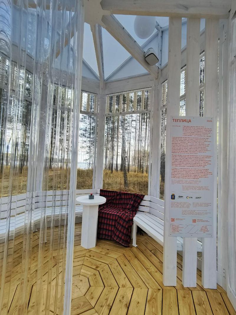 Автором арт-объекта стала художница и архитектор Ольга Рокаль из Москвы. Посетители могут не только там погреться под уютным пледом, но и послушать истории рефтинцев.