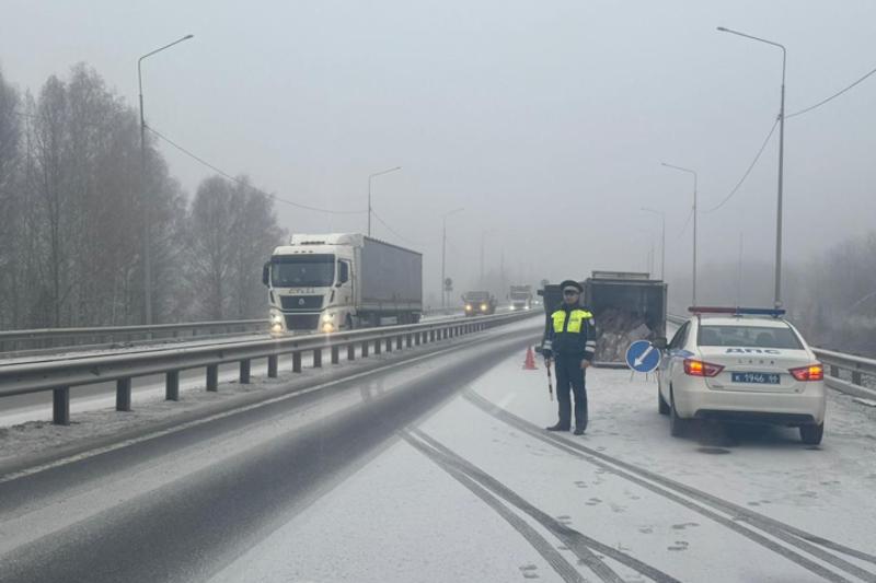 По данным автоинспекторов, водитель грузовика не справился с управлением. В результате транспортное средство опрокинулось. В результате ДТП никто не пострадал.