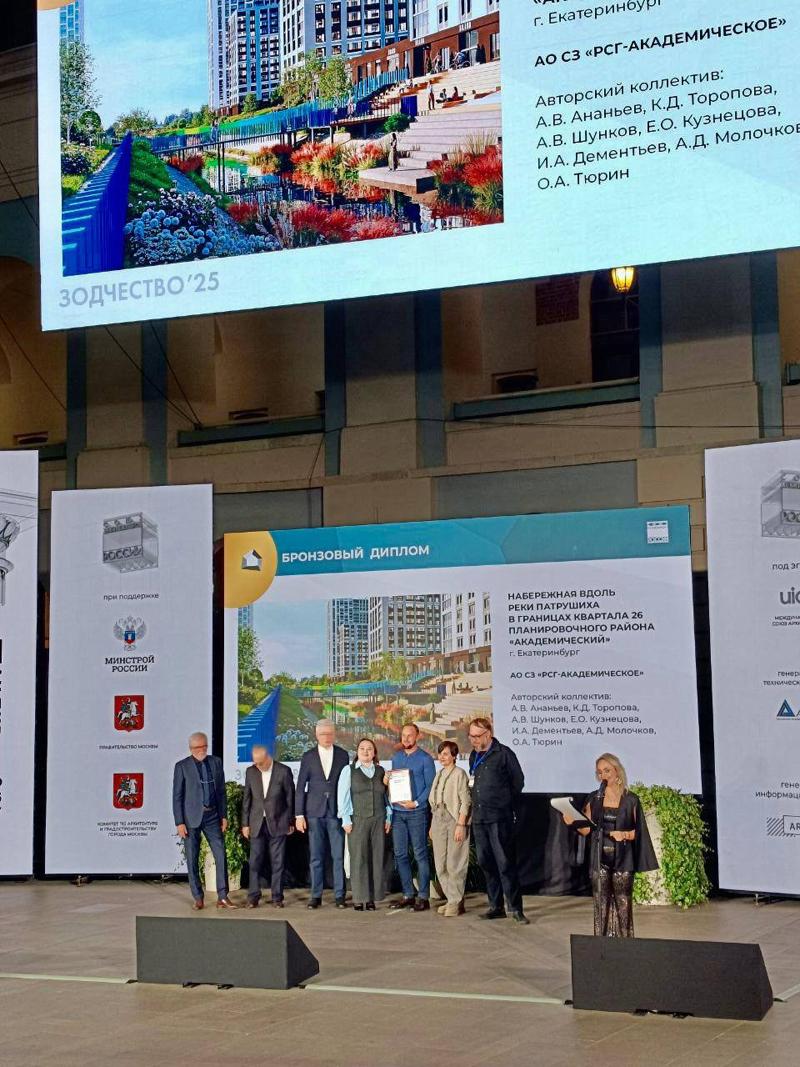 Проект благоустройства набережной реки Патрушихи в Академическом районе Екатеринбурга занял третье место на международном фестивале «Зодчество». Авторский тандем во главе с главным архитектором АО СЗ «РСГ-Академическое» (входит в ГК «КОРТРОС») Александром Ананьевым был удостоен диплома в номинации «Открытые общественные пространства» в рамках смотра-конкурса «Архитектурные произведения 2023–2025 годов. Проекты и постройки».
