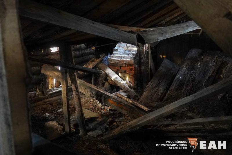 Заходить страшно уже даже во двор. Над головой опасно свисают прогнившие доски, которые в любой момент могут рухнуть.