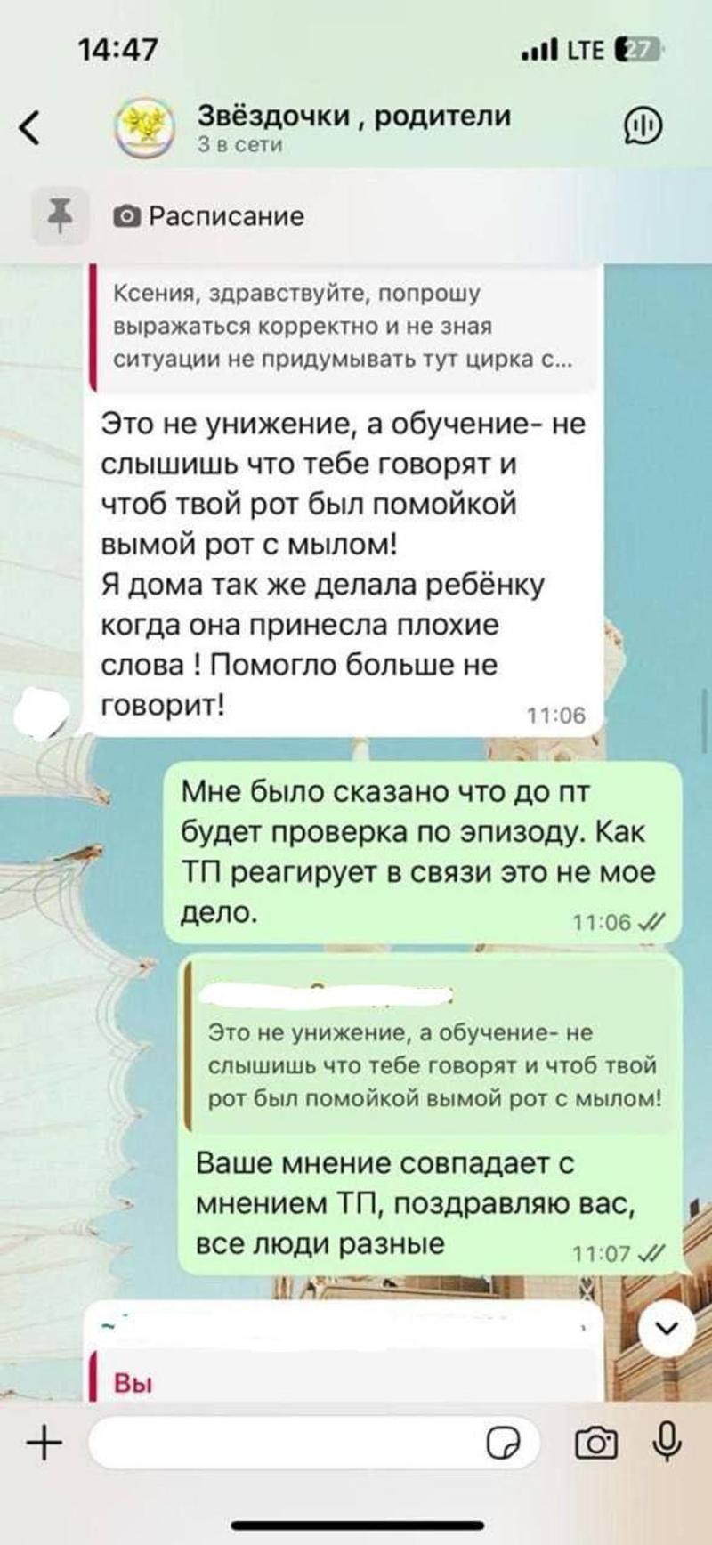 «Им просто не хочется никаких перемен, так как уже скоро выпускной. Более того, они заявили мне, что и сами моют рты с мылом своим детям и не видят в этом ничего плохого. Я такие методы воспитания не поддерживаю.