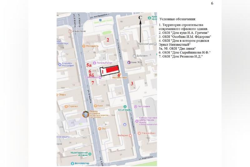 Согласно представленной проектной документации, предполагается не перестройка, а строительство с нуля каменного двухэтажного здания высотой до 9 м. Высота здания ограничена регламентами охранных зон расположенных рядом объектов культурного наследия. В непосредственной близости их шесть.