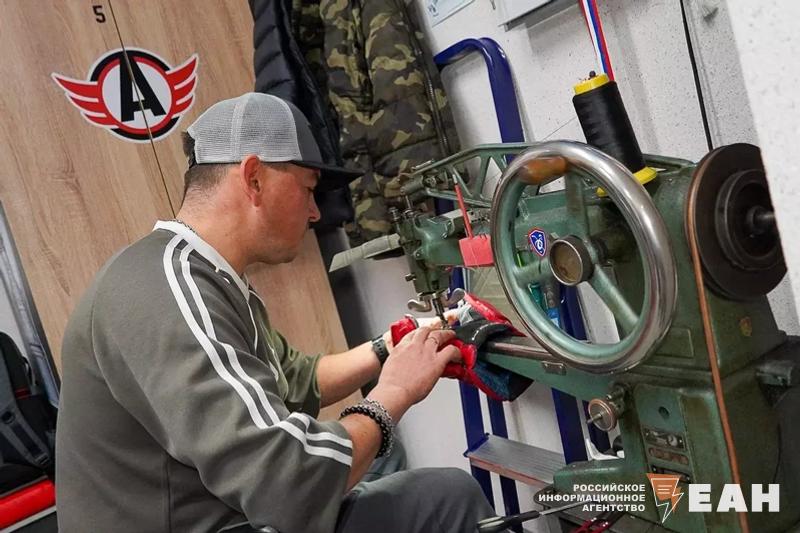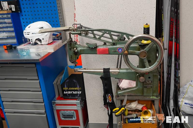 Оборудование мастерской соответствует стандартам НХЛ, но есть и раритет — старая швейная машина.