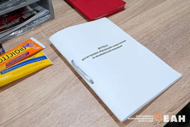 На стене — доска с информацией о травмированных и сроках восстановления, на столе — журнал всех обращений игроков, множество документов. Важнейшие препараты и средства первой помощи — все под рукой.