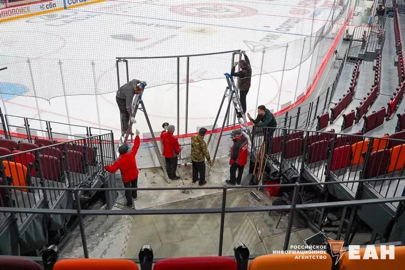 За состоянием льда следит сервис-бригада из 12 человек. В их распоряжении две машины «Замбони» и другие инструменты для подготовки. Лед создают с нуля перед сезоном: требуется около 400 кубометров очищенной воды, работа занимает шесть дней. Перед матчами и во время игры поверхность обновляют несколько раз.