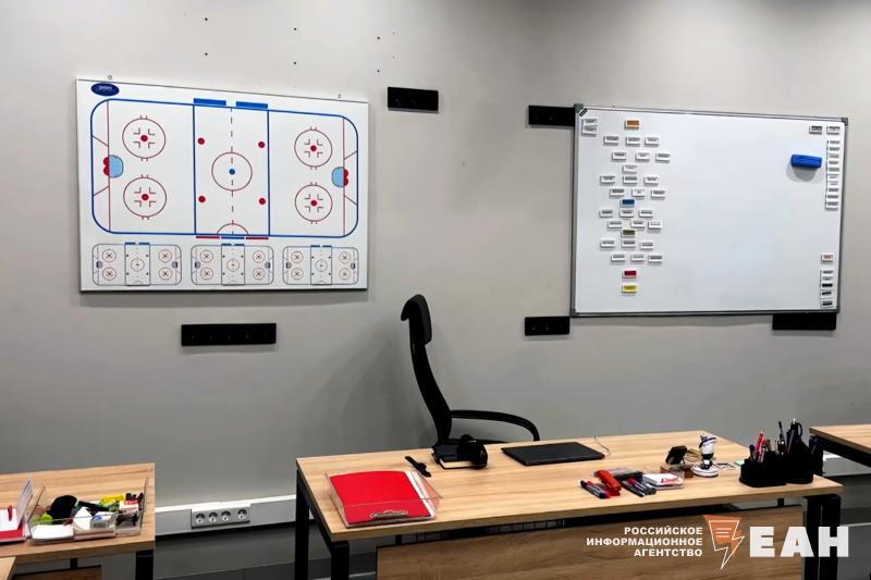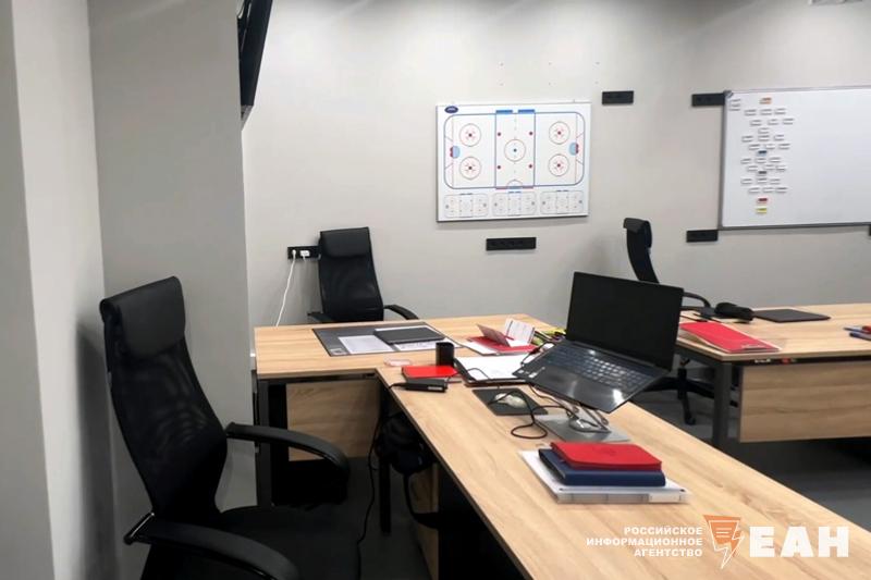 «Здесь вообще все удобно. Большая комната, есть диван, телевизор, на котором игроки смотрят видеонарезки. Все находится на одном этаже — раньше было на двух, теперь проще», — отмечает главный тренер Николай Заварухин.