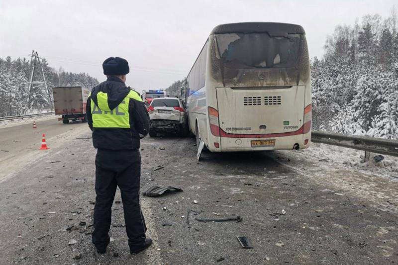 Серьезное ДТП с участием автобуса и двух легковушек произошло возле Березовского под Екатеринбургом. По данным местных пабликов, в результате аварии погибли люди.