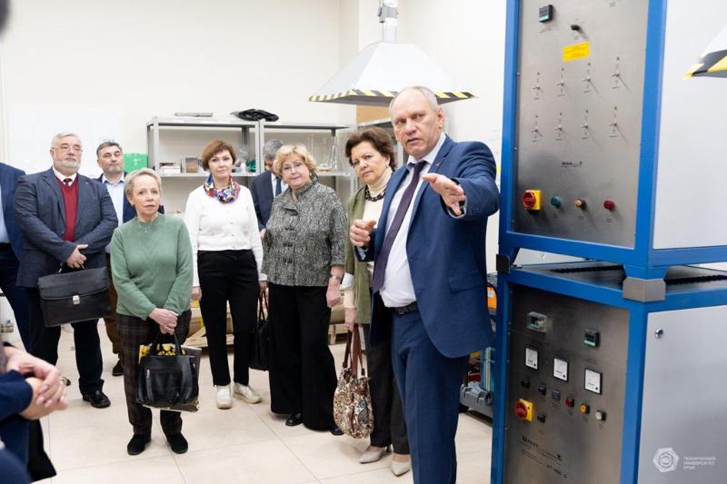 Визит начался с экскурсии по зданию Технического университета УГМК, которую для гостей провел директор вуза Вячеслав Лапин. Он показал современные учебные аудитории, мультимедийные лаборатории и исследовательские комплексы, а также рассказал о реализуемых научных проектах и их практической значимости для предприятий.