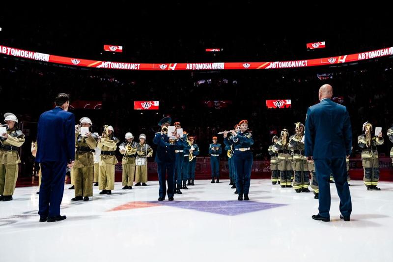 Матч был был приурочен к 35-летию со дня создания Министерства по чрезвычайным ситуациям России и получил название «Команды смелых». Почетное право сделать символическое вбрасывание получил заместитель начальника управления пожаротушения ГУ МЧС России по Свердловской области, полковник Юрий Гребнев, а перед этим он эффектно спустился из-под сводов «УГМК-Арены». Перед стартовым свистком государственный гимн исполнил оркестр Уральского института ГПС МЧС России.