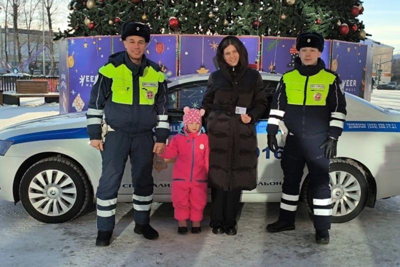 Торжественное вручение подарка состоялось у новогодней елки в одном из торговых центров Екатеринбурга. Памятный подарок по поручению главы свердловского гарнизона полиции генерал-лейтенанта Александра Мешкова вручили начальник управления по работе с личным составом Сергей Волощук и инспекторы специализированного батальона Госавтоинспекции.