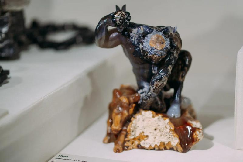 На выставке можно найти камеи из кремня и кварца, работы из крупных кристаллов и уникальные букеты из практически необработанных минералогических образцов. Одной из особенностей выставки стало включение композиций на сюжеты русских сказок и героев русской истории, а также впервые представленных в Екатеринбурге работ, посвященных античной мифологии и литературным образам.