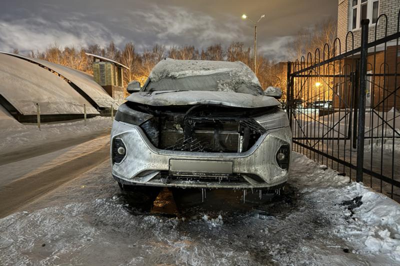 Жильцы соседнего дома начали забрасывать полыхающий кроссовер снегом. Но окончательно справиться с огнем смогли лишь пожарные. В результате пожара у автомобиля повредился моторный отсек и поверхность капота.