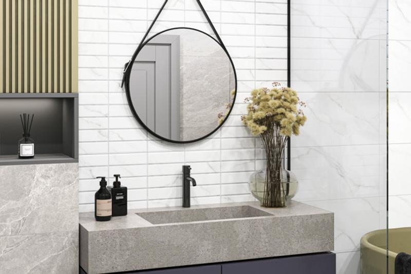 В минувшем году дизайнеры представили в формате 300x600 мм от бренда ALMA ceramica коллекции Azimut, Bronks, Greta, Savoy. Серии произведены с матовой поверхностью, с текстурами камня, бетона, мрамора и флористической тематикой. Отдельные артикулы дополнены рельефом, что придает текстуре объем, а интерьеру — интересный ритм и динамику. В каждой коллекции элементы можно комбинировать между собой, создавая цельные композиции, или использовать точечно, реализуя смелые дизайнерские замыслы и подчеркивая индивидуальность пространства.